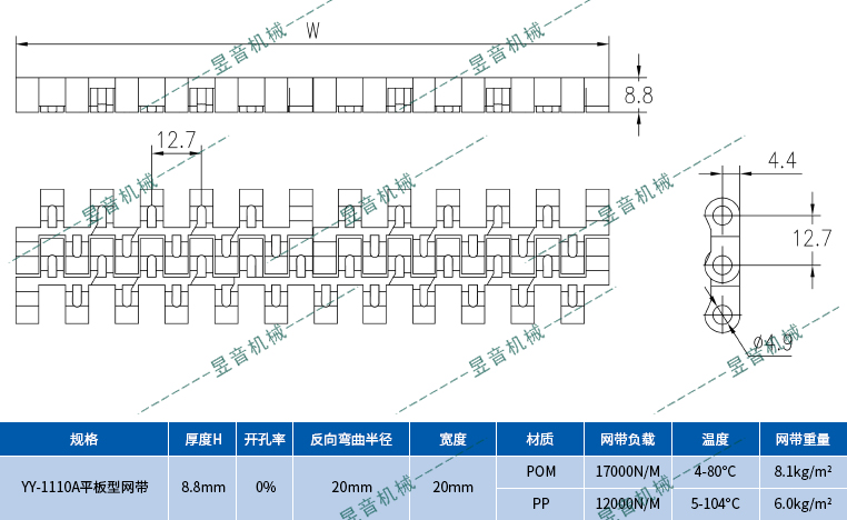 聚甲醛網(wǎng)帶(POM塑料網(wǎng)帶)承受溫度:4~80℃